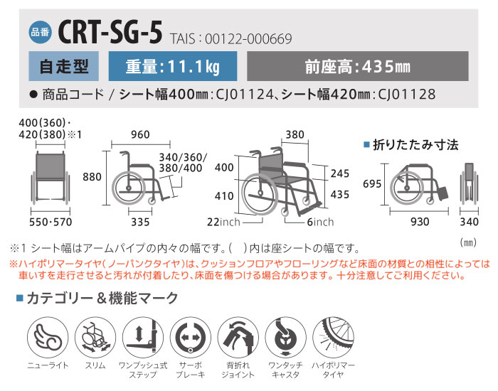 【MiKi】 自走介助兼用車椅子 CRT-SG-5 |